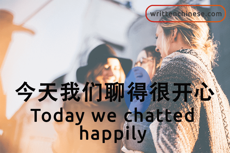 今天我们聊得很开心。(jīn tiān wǒ men liáo de hěn kāi xīn.) Today we chatted happily.