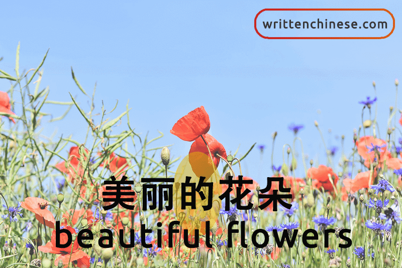 美丽的花朵。 (měi lì de huā duǒ) beautiful flowers.