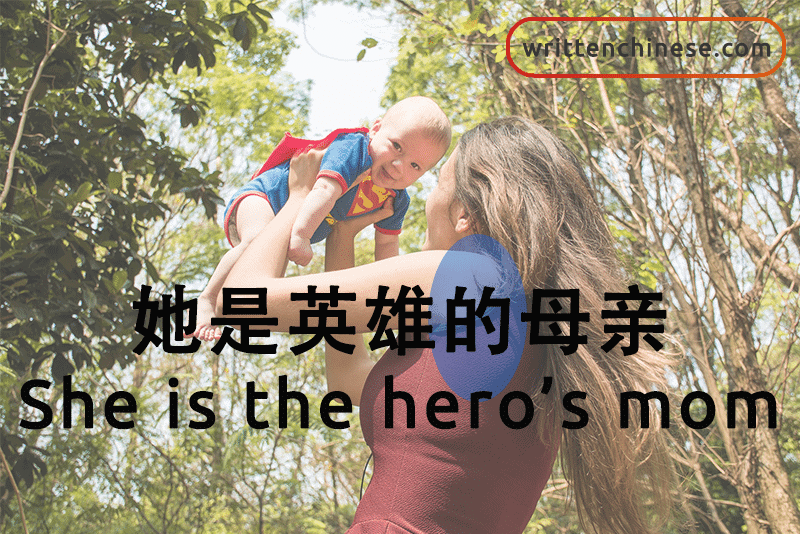 她是英雄的母亲。(tā shì yīng xióng de mǔ qīn) She is the hero‘s mom.