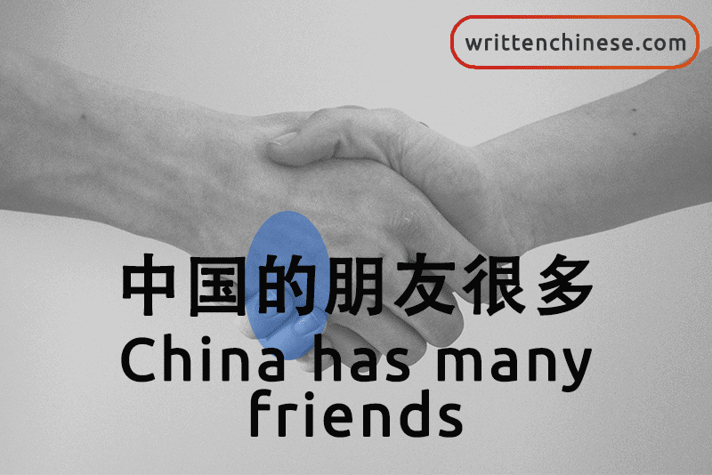中国的朋友很多。(zhōng guó de péng you hěn duō) China has many friends.