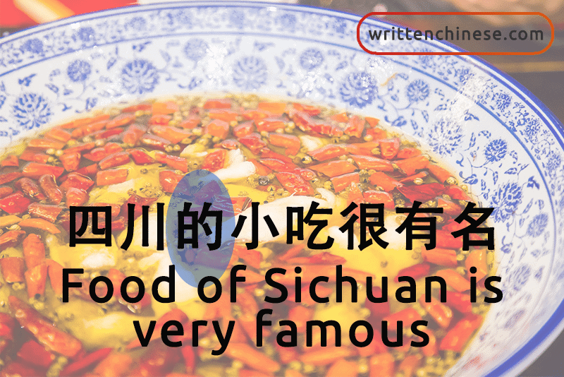 四川的小吃很有名。 (sì chuān de xiǎo chī hěn yǒu míng.) Food of Sichuan is very famous.