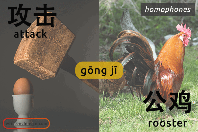 6. gōng jī 攻击 attack and 公鸡 rooster