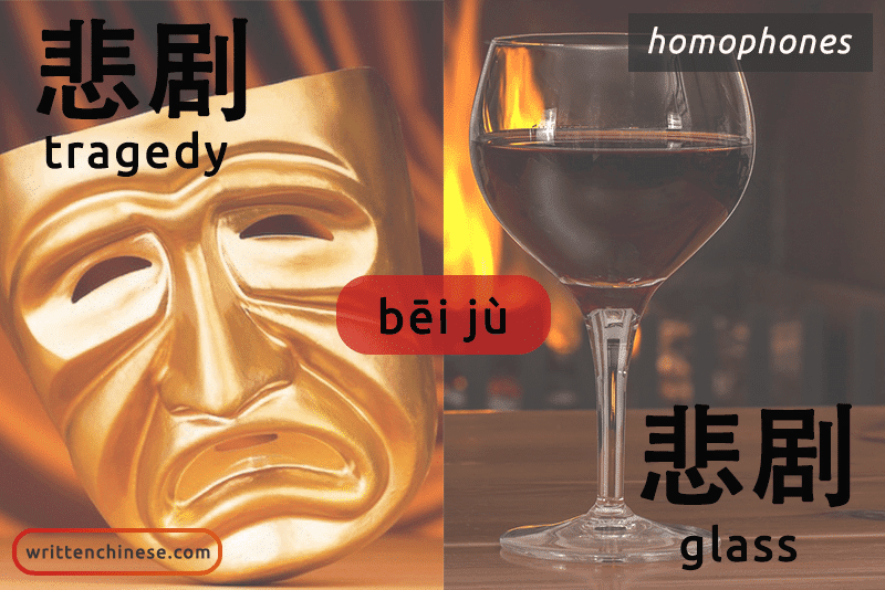 1. bēi jù 悲剧 tragedy and 杯具 glass