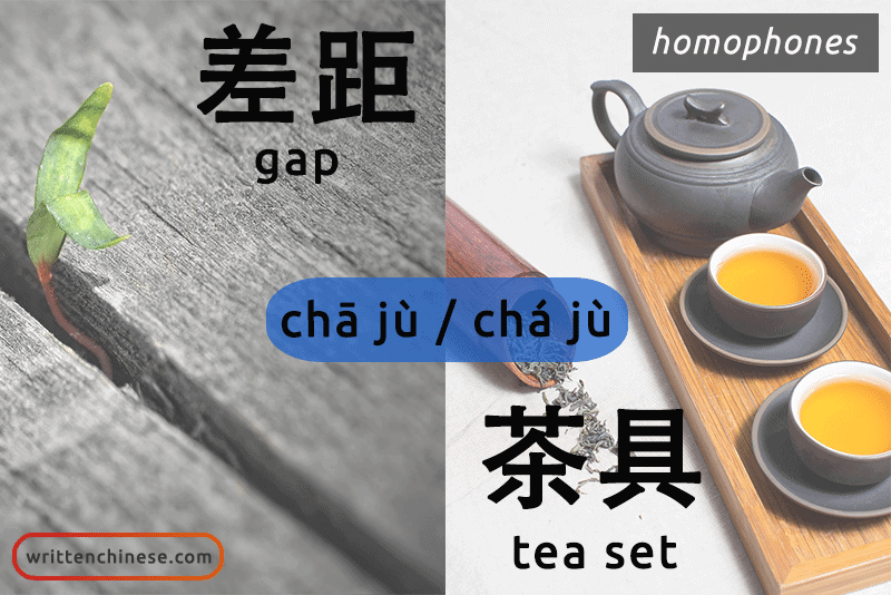7. chá jù / chā jù 茶具 tea set and 差距 gap