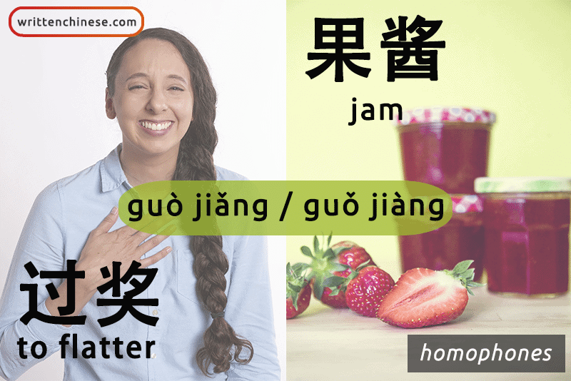 4. guò jiǎng / guǒ jiàng 过奖 to flatter and 果酱 jam