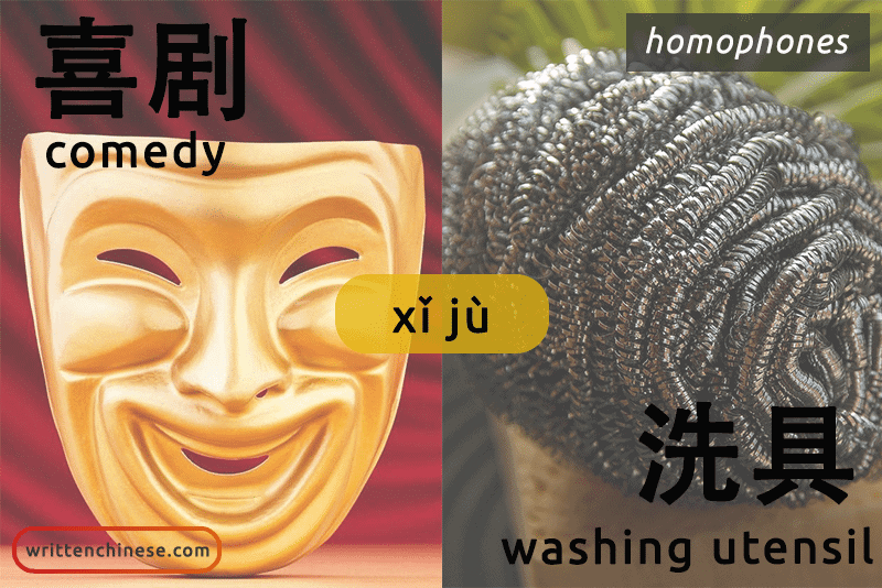 2. xǐ jù 喜剧 comedy and 洗具 washing tool