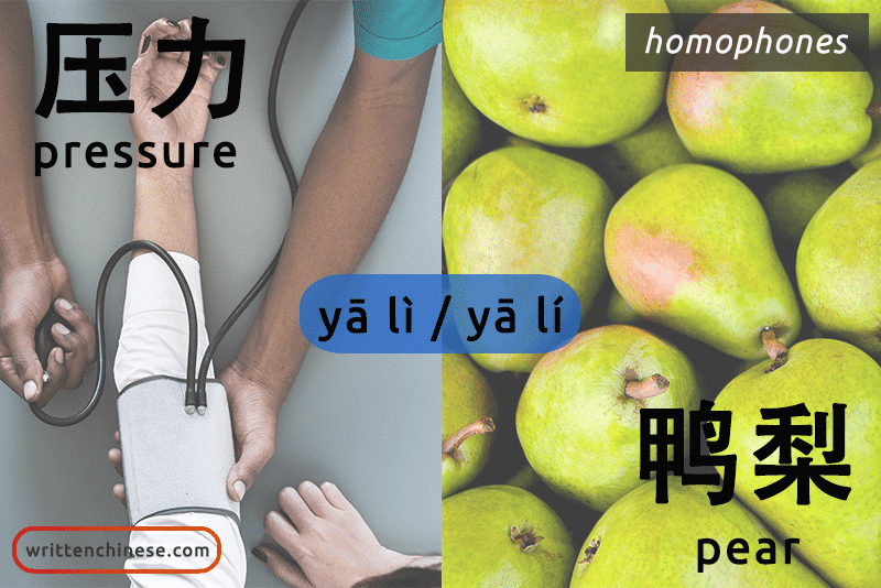 3. yā lì / yā lí 压力 pressure and 鸭梨 white pear