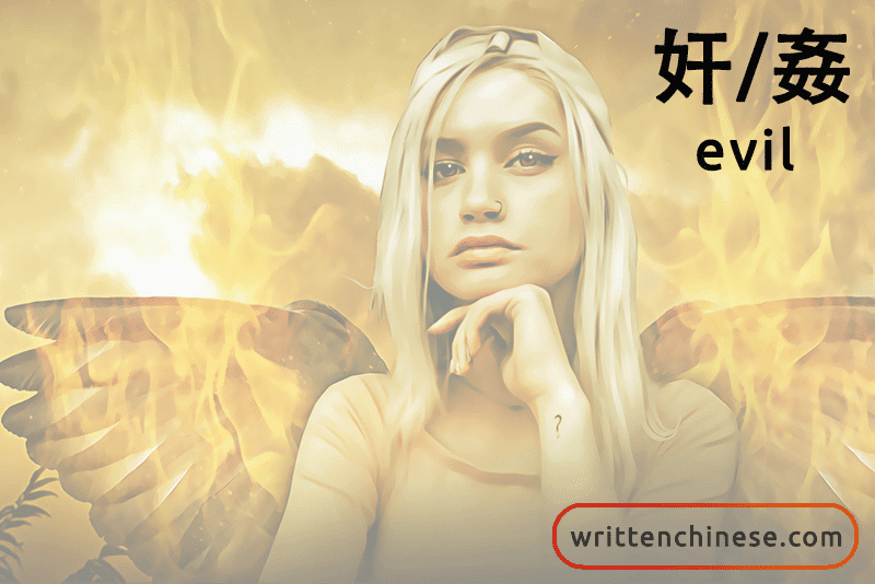 I want to focus on another one of these radicals, 女字旁 (nǚ zì páng), or the ‘female radical’. While most often associated with characters that label female relatives, this radical can also be seen in other words, some positive and some not so positive. Here are a few very common ones: