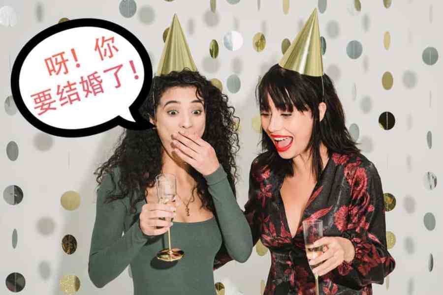 呀!你要结婚了!真好!(yā!nǐ yào jiéhūn le!zhēn hǎo!) Oh! You’re getting married! Splendid!