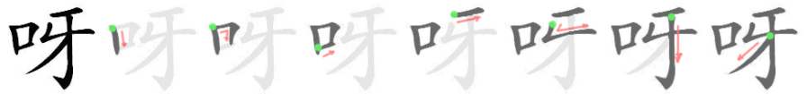 口 (kǒu) means ‘mouth,’ which indicates that the sound relates to the mouth and is the ideographic part of 呀 (ya). The right side of 呀 (ya) reveals how the character should be pronounced based on 牙 (yá).