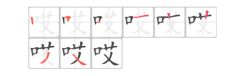 口 (kǒu) means ‘mouth,’ which means that the character has something to do with the mouth. The right-hand side of 哎 (āi) shows how the Chinese character is pronounced. 艾, found on the right side, has the sound (ài), which is then adjusted to (ai) for the interjection, 哎.