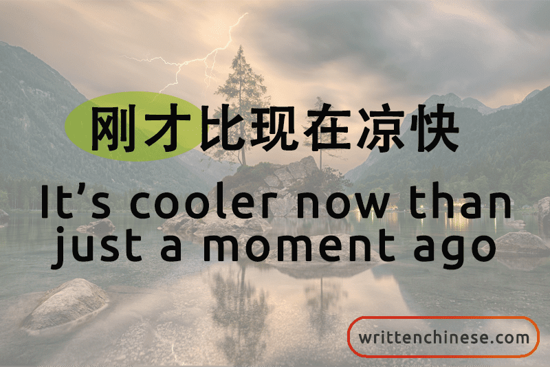 刚才比现在凉快。(gāng cái bǐ xiàn zài liáng kuai) It’s cooler now than just a moment ago.