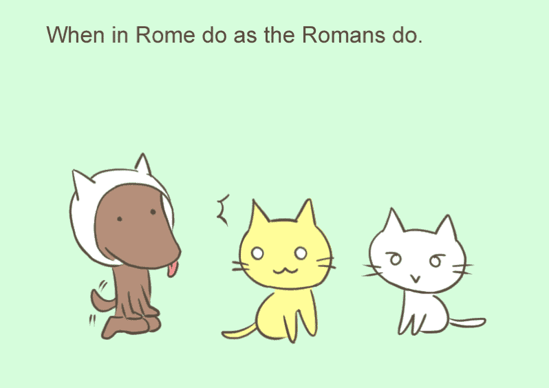 The origins of this phrase comes from a Christian saint who wrote in circa 390 AD, that on visiting Rome, he would fast on Saturday, which was not his normal custom, and that his friend should do the same to avoid ‘scandal’. The full phrase, When in Rome, do as the Romans do suggests that when travelling in another place with different customs than your own, follow the customs of the place to prevent offense.