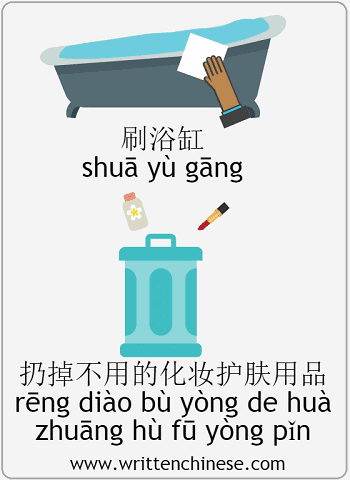 刷浴缸 (shuā yù gāng) Scrub bathtub/shower
