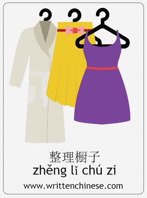整理橱子 (zhěng lǐ chú zi)/衣柜 (yī guì) Organize closet/wardrobe