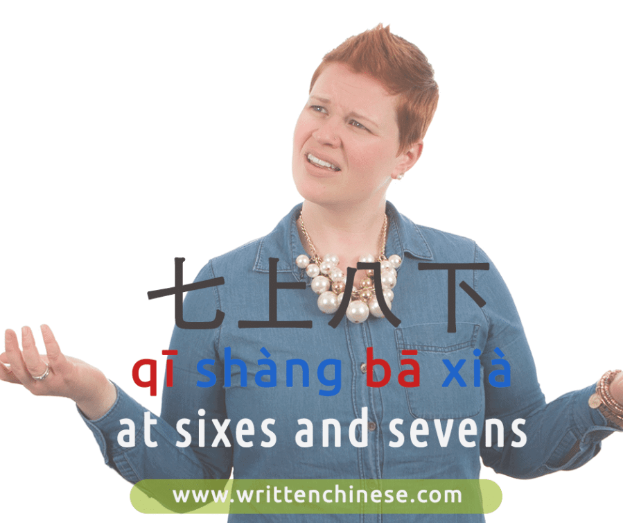 Similar to the English expression ‘all sixes and sevens’, the literal translation of the idiom is ‘Seven Up, Eight Down’. This Chengyu refers to a person whose mind is a mess and cannot think straight.