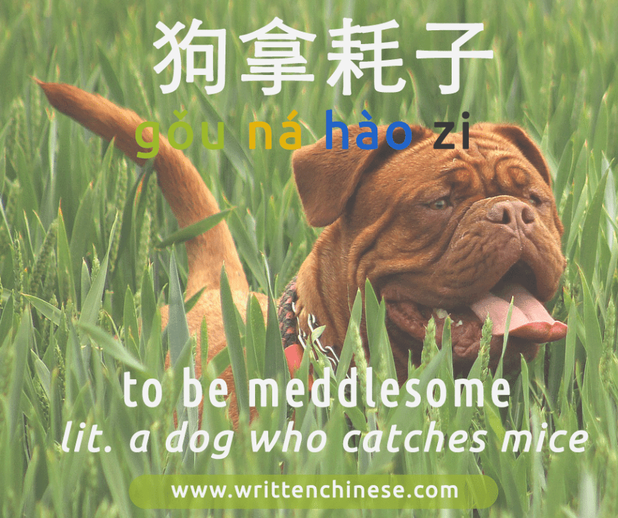 9. 狗拿耗子 (gǒu ná hào zi) – 多管闲事 (duō guǎn xián shì)