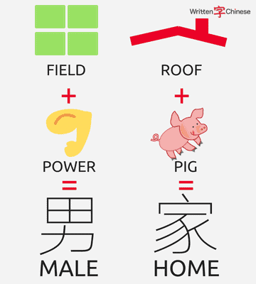 You can learn more about pictographs, combined ideographs, and the other types of Chinese characters here.