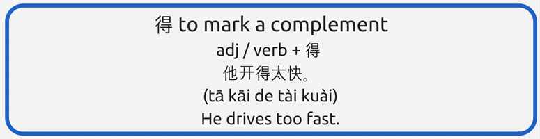 (de) can be quite challenging to learn, as there is no English equivalent. Follow this sentence pattern to use the 得 (de) particle: