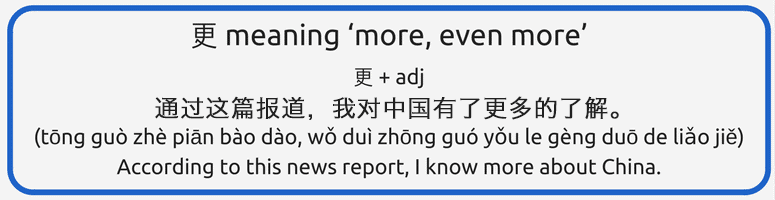 zhōng guó yǒu le gèng duō de liǎo jiě) According to this news report, I know more about China.