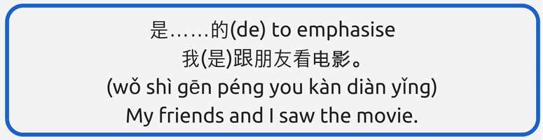 我(是)跟朋友看电影。(wǒ shì gēn péng you kàn diàn yǐng) My friends and I saw the movie.