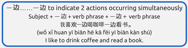 2. 一边……一边 to indicate 2 actions occurring at the same time