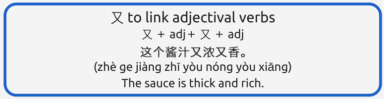 这个酱汁又浓又香。(zhè ge jiàng zhī yòu nóng yòu xiāng) The sauce is both thick and rich.