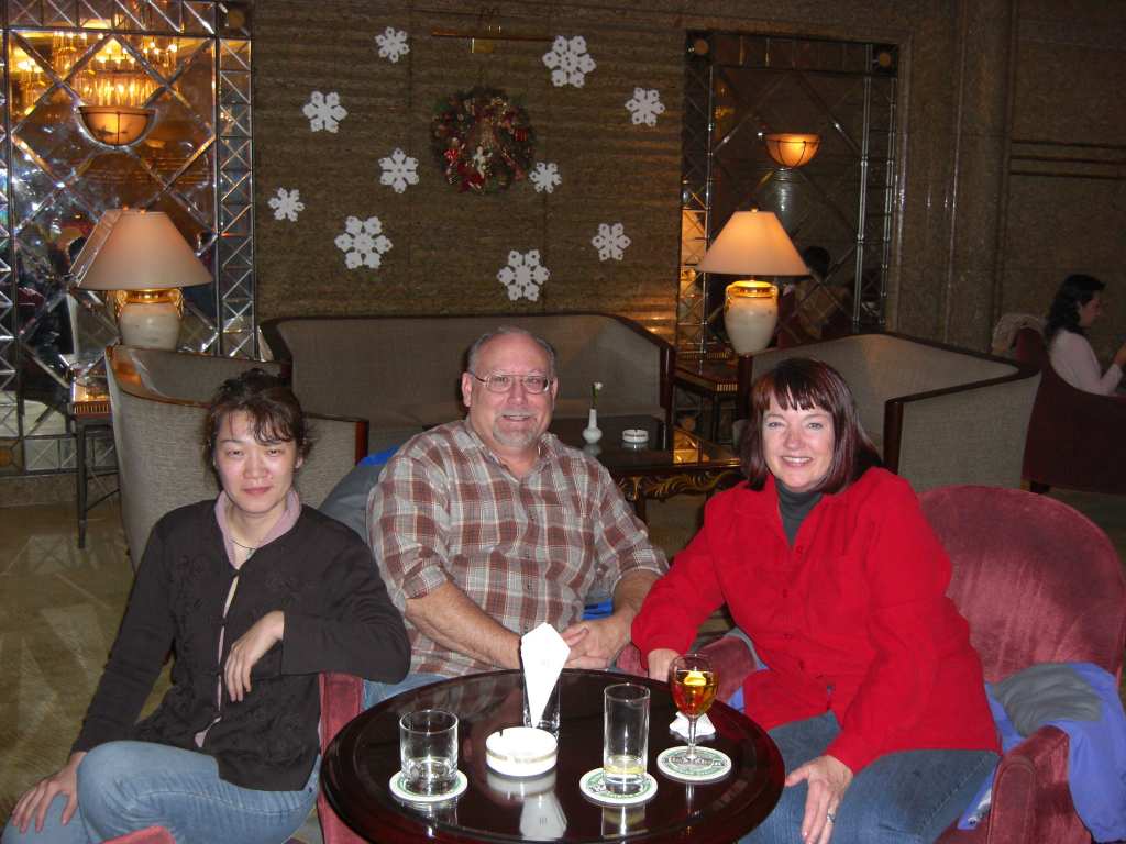 I was in China for the third time since 2006, when I first arrived in Beijing as a visiting professor in Beijing University’s international MBA program. My husband had visited me there the previous year, and at that time we went to Xi’an over Christmas to see the amazing Terracotta Warriors. On that trip and the Shanghai/Suzhou trip, we had been accompanied by lovely Elizabeth, a native Beijinger whom I had met through a mutual friend. Here we are toasting Christmas Eve in Shanghai.