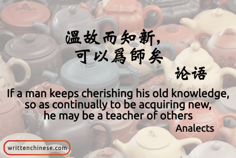The Master said, “If a man keeps cherishing his old knowledge, so as continually to be acquiring new, he may be a teacher of others.”