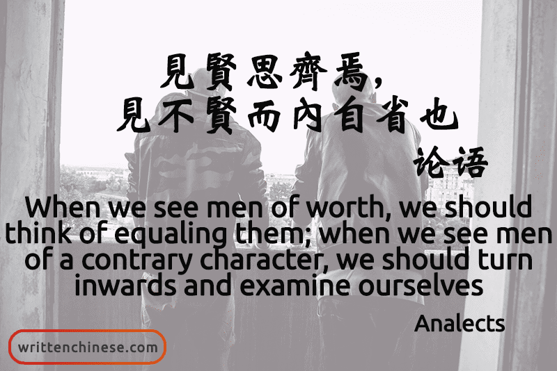 The Master said, “When we see men of worth, we should think of equaling them; when we see men of a contrary character, we should turn inwards and examine ourselves.”