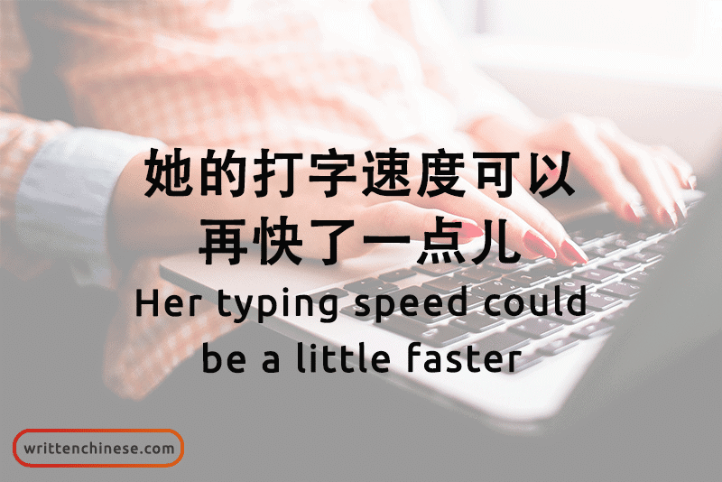 她的打字速度可以再快了一点儿。(tā de dǎ zì sù dù kě yǐ zài kuài le yī diǎnr.) Her typing speed could be a little faster.