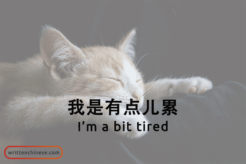 我是有点儿累。(wǒ shì yǒu diǎnr lèi.) I’m a bit tired.