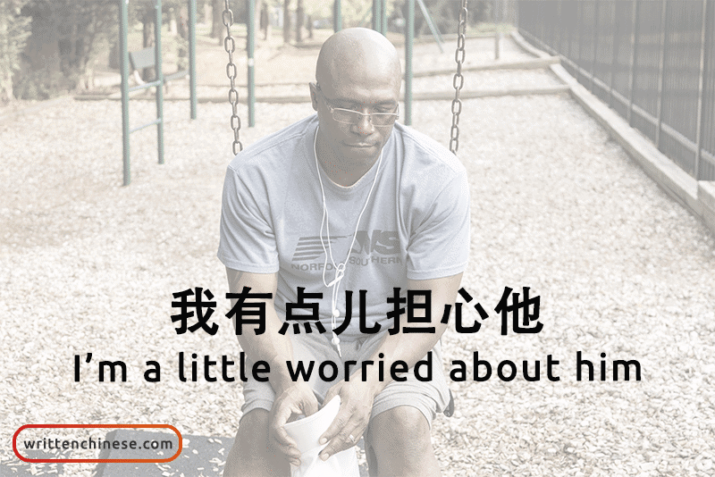 我有点儿担心他。(wǒ yǒu diǎnr dān xīn tā) I’m a little worried about him.