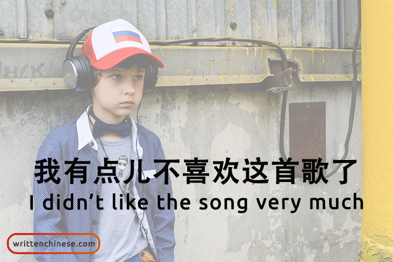 我有点儿不喜欢这首歌了。(wǒ yǒu diǎn bù xǐ huan zhè shǒu gē le.) I didn’t like the song very much.