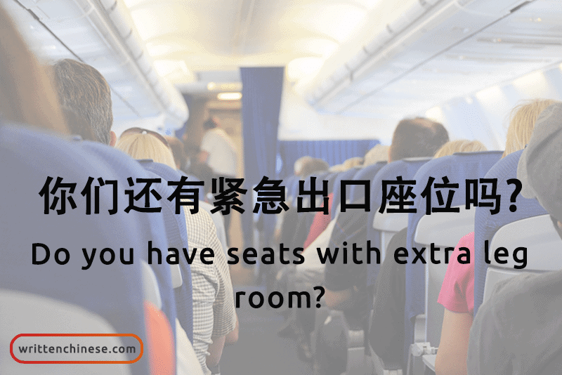 你们还有紧急出口座位吗?(nǐ men hái yǒu jǐn jí chū kǒu zuò wèi ma?) Do you have seats with extra leg room? (Literal: Do you have a seat next to the emergency exit?)