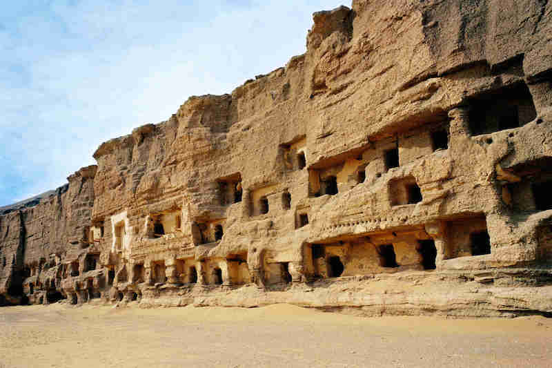 These caves should more specifically be referred to as the Mogao Caves 莫高石窟 (mògāoshíkū) and are one of the three most famous Buddhist sculptural sites in China. One of the most breathtaking things about the Mogao Caves is its desolate desert location and this is probably why these elaborate cave paintings served as images for meditation.  Many of the paintings and sculptures depicted Buddhist beliefs and stories for those who were unable to read. The caves are not only a tourist attraction but still a place that many take a pilgrimage to every year.