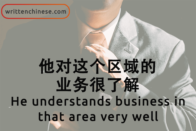 他对这个区域的业务很了解。 (tā duì zhè ge qū yù de yè wù hěn liǎo jiě.) He understands business in that area very well.