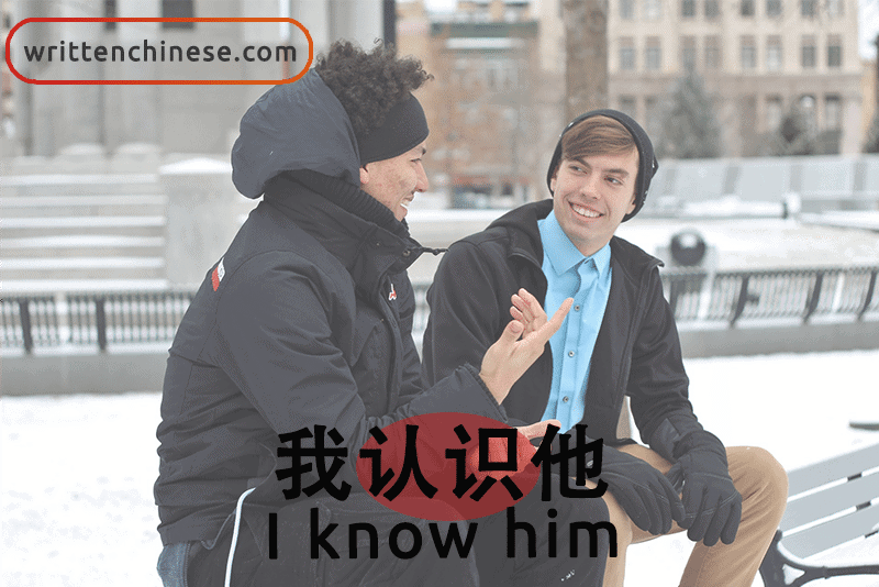 (1) 我认识他。(wǒ rèn shi tā)= I know him.